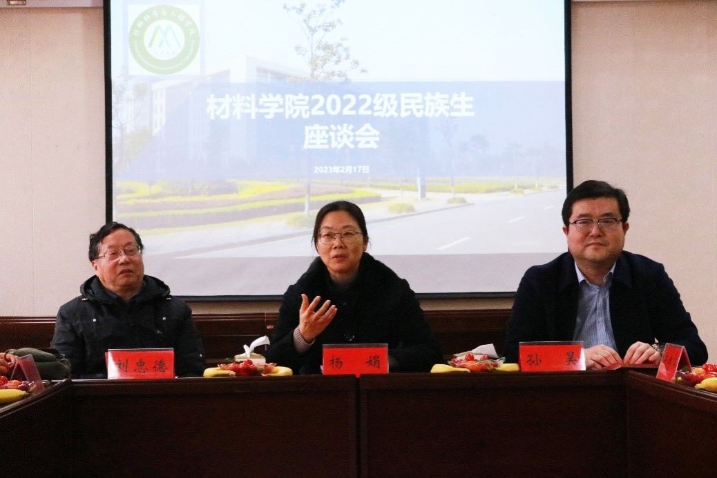 为进一步了解民族生在校思想动态和学习生活情况,2月17日下午,材料学院在材料楼304会议室召开2023年春学期民族生座谈会。材料学院党委书记、关工委主任杨娟、材料学院关工委常务副主任刘忠德、学工处学生管理科帕提曼·吐尔地、新疆派驻教师于秀芹、辅导员和部分少数民族学生参加座谈会。会议由材料学院党委副书记、副院长、关工委副主任孙昊主持。