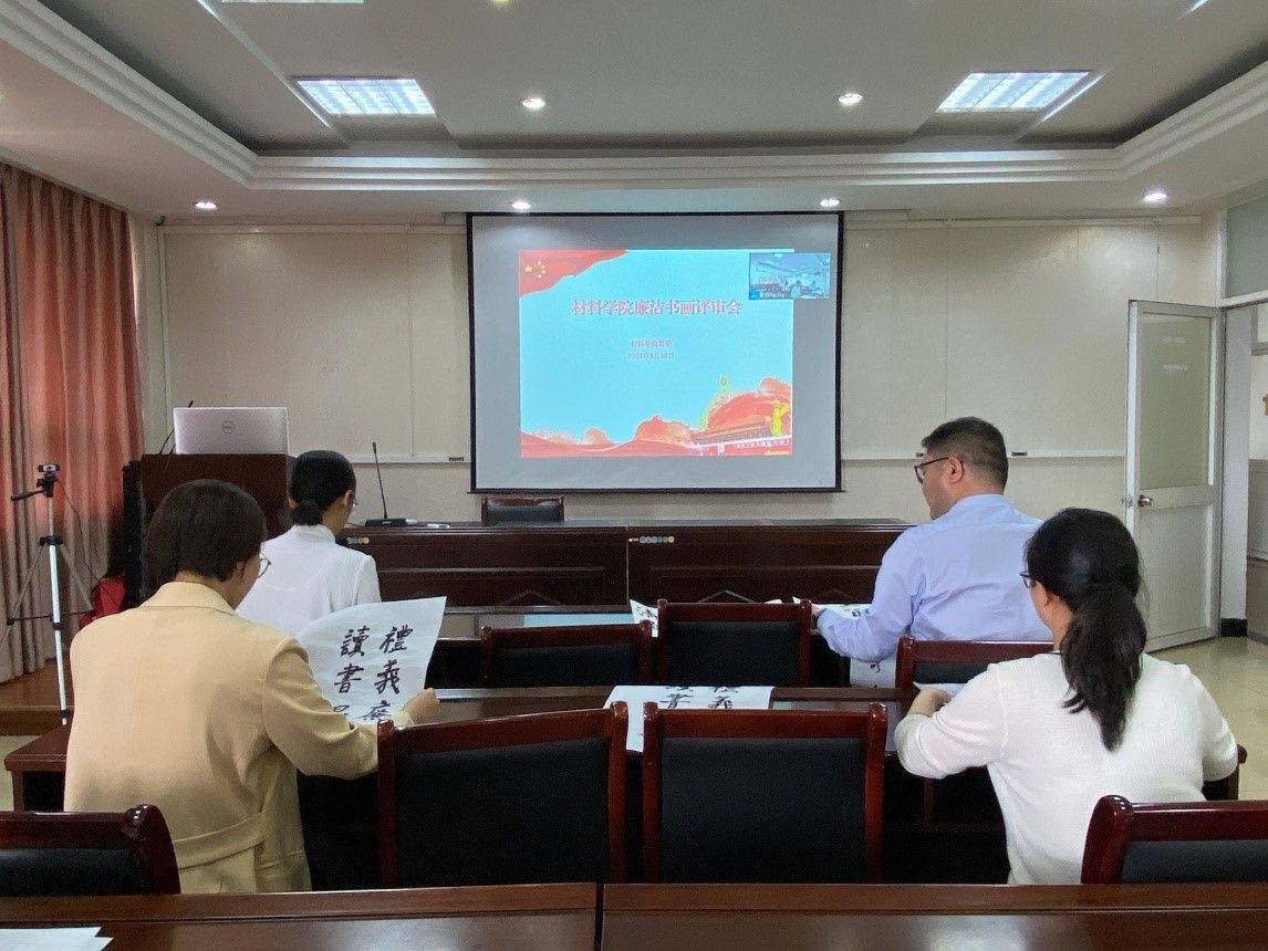 5月18日下午,学院党委召开廉洁书画作品评审会,院党委书记、关工委主任杨娟、院党委副书记、副院长、关工委副主任孙昊、院关工委委员罗新民、党务办公室主任王凤芹、团委书记薛梅通过线上线下相结合的形式,对征集到的作品进行评审。