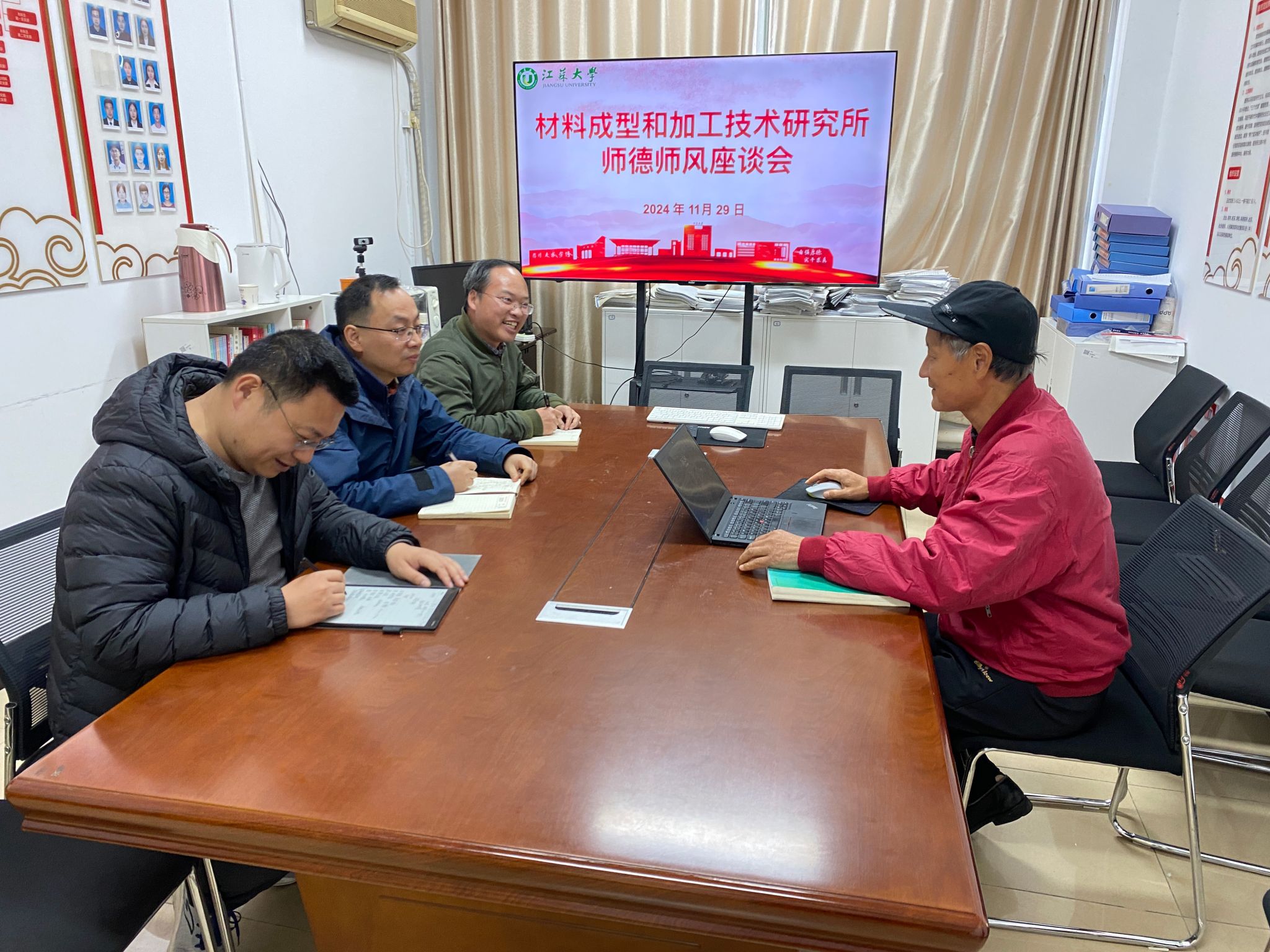 座谈会上,汪建敏强调了师德师风的重要性。他指出,教师不仅是知识的传播者,更是学生价值观、人生观的引导者,良好的师德师风是高校健康发展的基石,也是构建和谐校园的重要保障。随后,材料成型和加工技术研究所所长李天庆对本所目前师德师风建设的情况进行了汇报。他指出,近年来,学院通过开展师德师风教育活动、完善师德考核机制等方式,取得了一定成效,但仍存在一些问题和挑战,需要全体教师共同努力,持续改进。最后,汪建敏强调,师德师风建设不是一朝一夕的工作,而是需要长期坚持,他呼吁全体教师要以身作则,树立良好的师德形象,为学生的成长成才创造良好的环境。